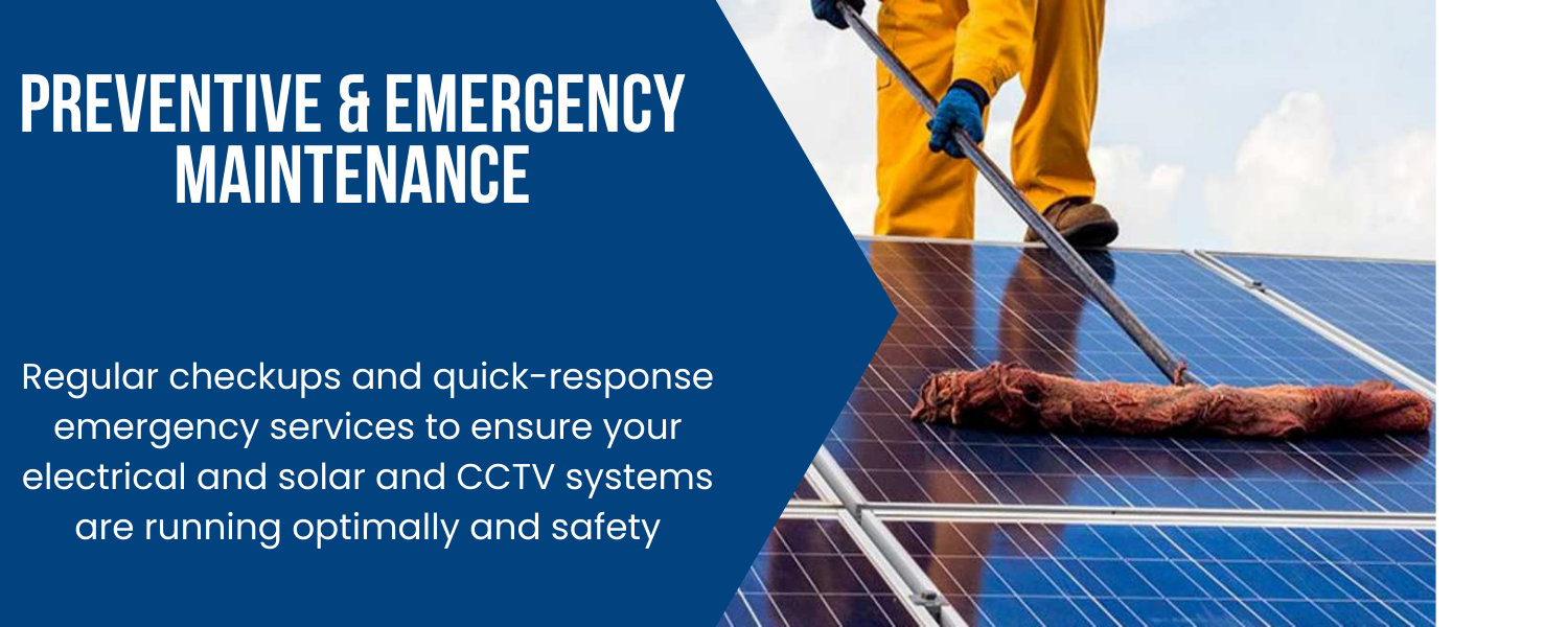 Regular checkups and quick-response emergency services to ensure your electrical and solar and CCTV systems are running optimally and safely.